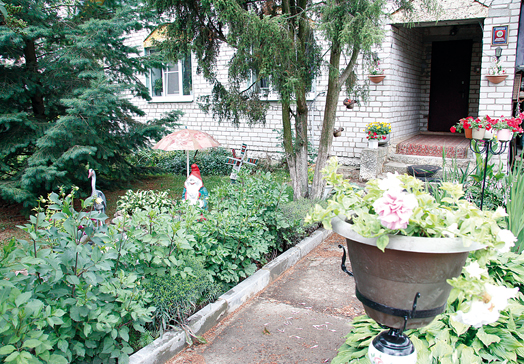 Из таких побед складываются будни Тамары Абрамович, живущей в агрогородке Кадино, ее сказочный сад редакция газеты не смогла пройти мимо. У входа — маленький гипсовый гномик и важная цапля у самодельного пруда, на дереве — плетеные корзиночки с орешками, видимо для белочки лакомства. Правее, затаившись в цветах, — сладкая парочка, нарисованная на небольших бочонках и минизоопарк на ветвях кустарника. Над входом в мастерскую — серп и молот, как символ плодотворной работы и ударного труда, а рядом — уютный уголок с деревянными часами, лампадкой и вязаными игрушками. И среди этого волшебства скромно пропалывала цветочную клумбу хозяйка дома, человек застенчивый и трудолюбивый. «У вас, наверное, живет добрый домовой и помогает создавать уют»,— спросили мы. «Да, я бы не отказалась от его помощи, — поддержала шутку Тамара Петровна, – а то не знаю за что взяться, времени не хватает».
