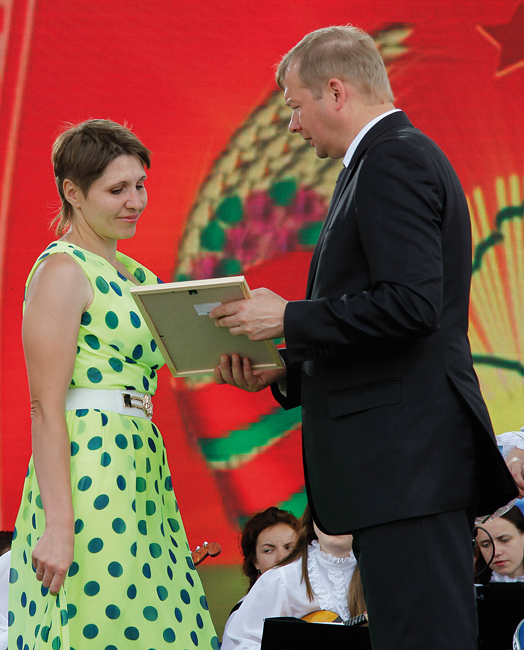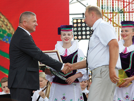 На второй день фестиваля «Александрия собирает друзей» состоялась торжественная церемония награждения передовиков агропромышленного комплекса Могилевской области, в которой принял участие заместитель министра сельского хозяйства и продовольствия Республики Беларусь Леонид Маринич.