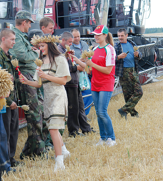 Солнечного неба, хорошей погоды на весь период жатвы и щедрой нивы пожелала комбайнерам председатель районной организации Белорусского общества Красного Креста Раиса Иваницкая. В рамках акции «Урожай-2015» она вручила участникам жатвы медицинские аптечки для комплектации комбайнов и автомобилей. (Такие же аптечки будут вручены во всех хозяйствах, приступивших к уборке зерновых).