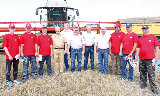 Это значительное событие не осталось без внимания руководства района. Председатель райисполкома Анатолий Дутько прямо на поле вручил денежные премии: по 500 тысяч рублей старшим — комбайнерам, по 400 тысяч рублей помощникам комбайнеров и водителям. Яркие майки и кепки с символикой придали еще более праздничное настроение механизаторам.