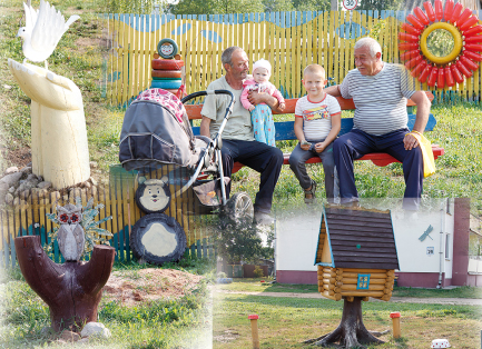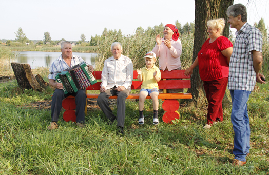 Как оказалось, идея эта уже начала воплощаться. Свежие следы от вырубки дряхлых деревьев и кустарников явились живым свидетельством того, что от былого захламления здесь скоро ничего не останется. И поставленная ярко выкрашенная скамейка уже «обрела» своих посетителей. Именно здесь сельчане собрались, чтобы поговорить о жизни. С удовлетворением рассказали нам, что деревня становится красивее, раньше, мол, порядок никто не наводил, а теперь старые дома убрали, землю распахали, цветы кругом — любо-дорого посмотреть.