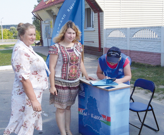 — На прошлой неделе мы собрали 50 подписей, — прокомментировала ситуацию Елизавета Сергеевна, — особенно энергично вели себя пенсионеры, хвалили Президента страны, благодарили за мир, вспоминали славянских соседей и радовались, что, несмотря на сложную политическую ситуацию в Украине, Беларусь остается оплотом спокойствия и благополучия.