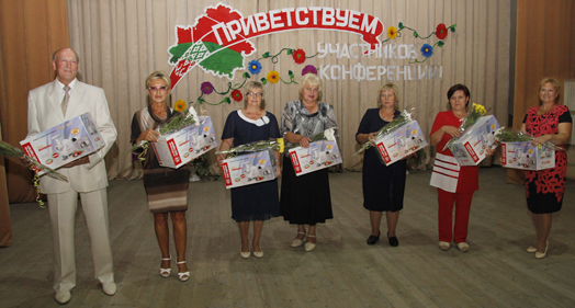 Глава района обратил внимание на важность гражданско-патриотического воспитания, особенно в преддверии главного политического события страны – выборов Президента Республики Беларусь: дети и подростки должны получать объективные знания о государстве, его истории, культуре, экономике и политике._MG_0210_1Анатолий Дутько вручил Почетные грамоты райисполкома за многолетний добросовестный труд в системе образования методисту УМК отдела образования, спорта и туризма райисполкома Раисе Зайцевой и заведующей ГУО «Ясли-сад д.Михалёво» Надежде Ивановой._MG_0218_1Поздравляя педагогов с началом нового учебного года, Инна Козлова заметила, что когда есть желание трудиться и каждый с ответственностью подходит к делу, задачи любой сложности становятся решаемыми. За особый вклад в развитие способностей одаренных учащихся вручено Свидетельство о награждении третьей премией Президента Республики Беларусь учителю трудового обучения ГУО «Кадинская СШ» Елене Заблоцкой._MG_0228_На мероприятии чествовали ветеранов системы образования. Со словами благодарности за неустанный труд души, мудрость и терпение ценные подарки им вручила председатель райкома профсоюза работников образования и науки Лариса Дедкова. Поимённо вспомнили педагогов, которые защищали Родину в годы Великой Отечественной войны.