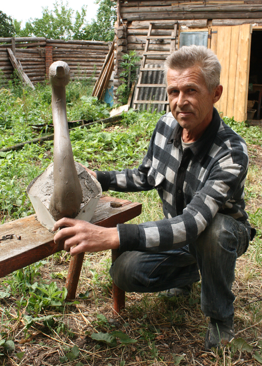 Проще говоря, он изготавливает из цементного раствора фигуры различных животных и птиц. Цемент готовится из трех компонентов, которые мастер путем проб и ошибок изобрел сам и, естественно, держит в секрете.