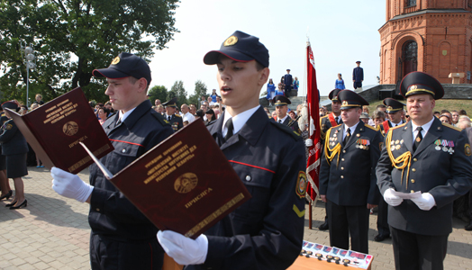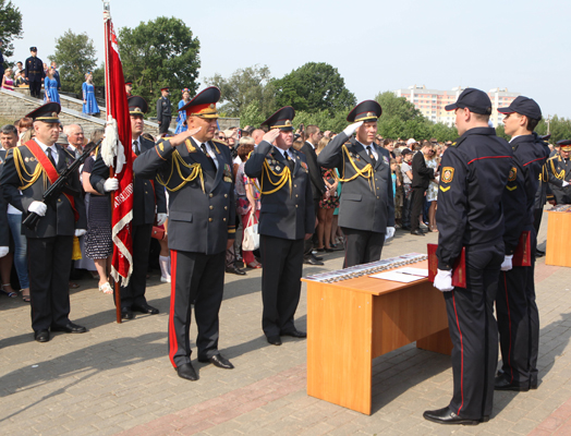 Гости праздника произносили множество слов в адрес новоиспеченных сотрудников милиции. Поздравление произнес заместитель министра внутренних дел генерал-майор Александр Кобрусев и передал наилучшие пожелания министра МВД Игоря Шуневича. «Приняв присягу, вы возложили на себя в полной мере ответственность за обеспечение в нашем государстве общественного порядка и спокойствия, обязанность по защите прав и интересов граждан. Учеба в институте должна стать тем исходным рубежом, который создает личность профессионала, позволяет достойно нести эстафету старшего поколения, свято беречь и приумножать его славные традиции».