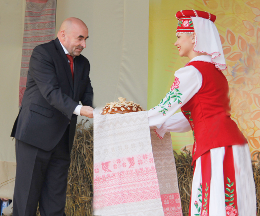 Председателю райисполкома был вручен душистый хлебный каравай.