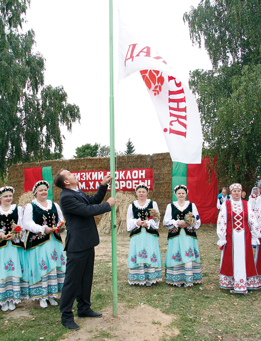 Почетное право поднять флаг праздника «Дажынкі-2015» было предоставлено победителю районного соревнования за достижение лучших показателей на уборке урожая зерновых и зернобобовых культур — комбайнеру ЗАО «Агрокомбинат «Заря» Владимиру Корсаку.