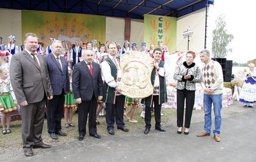Эстафету проведения «Дажынак» в следующем году приняли руководитель ГП «Махово» Александр Саренков и председатель Маховского сельисполкома Анатолий Германович.