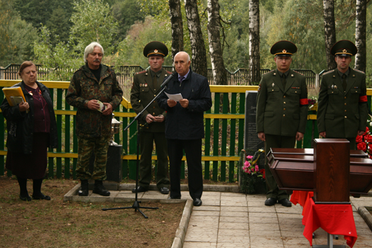 Останки Николая Рахаева и его неизвестного боевого товарища после отпевания были перезахоронены в братской могиле. В ней покоятся 37 воинов, защищавших эту землю до последнего вздоха. Венки и цветы к месту захоронения возложили представители районной и местной исполнительной власти, участники белорусского и российского поискового движения, военнослужащие, школьники и местные жители.