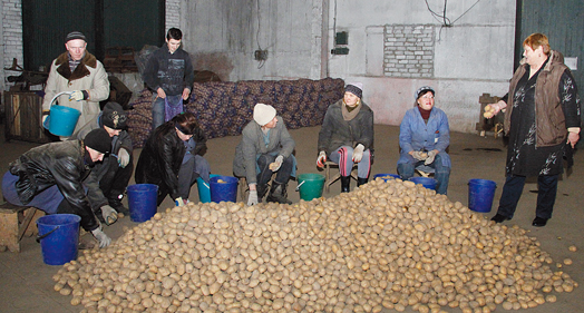 – Хранение любого урожая начинается с тщательного отбора и сортировки, – рассказывает заведующая складами ОАО «Экспериментальная база «Дашковка» Татьяна Калинина. – Так и у нас на картофелехранилище. Полеводческая бригада кропотливо проделывает эту работу, например, сейчас сортируют семянку, удаляя гнилые, зеленые и не пригодные для хранения корнеплоды с механическими повреждениями. Отбираются только целые здоровые клубни с плотной кожурой, – подчеркивает Татьяна Николаевна.