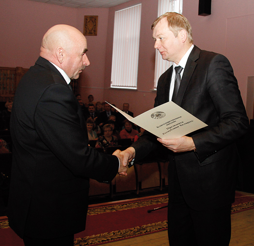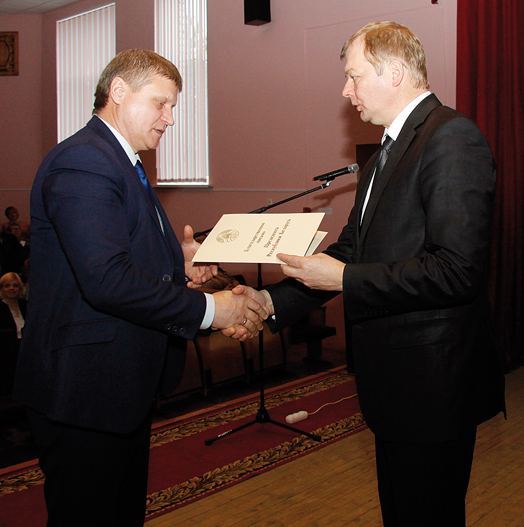 З Гімна Рэспублікі Беларусь пачалася ўрачыстая цырымонія ўзнагароджвання грамадзян, якія прынялі актыўны ўдзел у выбарчай кампаніі па выбарах Прэзідэнта Рэспублікі Беларусь. Як давераная асоба Аляксандра Рыгоравіча Лукашэнкі, старшыня аблвыканкама выказаў падзяку прысутным ад Прэзідэнта, падкрэсліўшы, што выбары прайшлі на вельмі высокім узроўні. Назіральнікі з замежных краін адзначылі адкрытасць і дэмакратычнасць выбарчай кампаніі, тое, што прайшла яна згодна з нацыянальным заканадаўствам і міжнароднымі