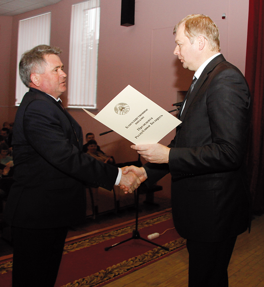 Яшчэ раз падзякаваўшы прысутных за актыўную работу па падрыхтоўцы і правядзенню вы-бараў Прэзідэнта Рэспублікі Беларусь, старшыня аблвыканкама ўручыў першае Падзячнае пісьмо Прэзідэнта Рэспублікі Беларусь старшынi раённага штаба па правядзенню выбараў, старшынi райвыканкама Анатолiю Дуцько са словамі прызнання за актыўную грамадзянскую пазіцыю, патрыятызм, ініцыятыву, прафесіяналізм і высокую адказнасць перад дзяржавай і грамадскасцю.