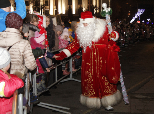 11 декабря могилевчане с нетерпением ждали чуда. И оно свершилось. На железнодорожный вокзал города из разных стран прибыли 50 Дедов Морозов. В сказочных санях они проехали по улице Первомайской, затем прошли до площади Ленина, весело приветствуя жителей. Под выступления творческих коллективов города и бурные ликования зрителей огни на главной елке торжественно зажглись!