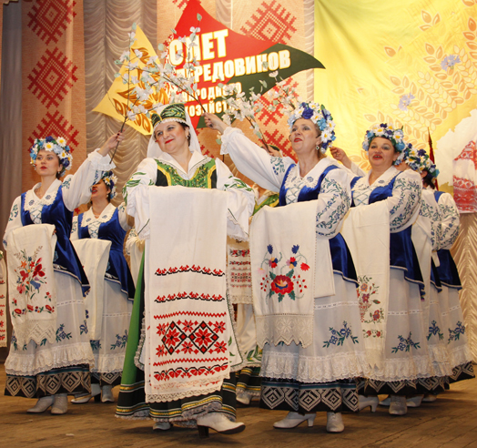 Очень красочным, эмоциональным было начало торжества, когда на сцену в ярких национальных костюмах вышли участники народного хора культработников района и народный ансамбль народной песни «Славiца» с песней «Магiлёўшчына», прославляющей родной край и людей труда.