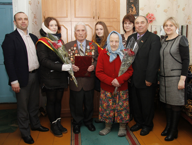 Василию Ермолаевичу были вручены грамота райисполкома, денежная премия и цветы, а также специальная табличка с надписью «Тут жыве ветэран Вялікай Айчыннай вайны. Дзякуй за Перамогу!».