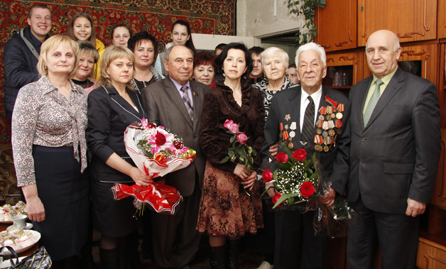 На свои года он совсем не выглядит – подтянутый, жизнерадостный, оптимистичный, с жизнеутверждающей энергией. Ветеран Великой Отечественной войны Адам Яковлевич Корытко из агрогородка Вейно встретил свой 90-й день рождения. Поздравить юбиляра с такой знаменательной датой приехали: заместитель председателя райисполкома Валерий Еленский, председатель районного Совета ветеранов Виктор Пинчук, начальник управления по труду занятости и социальной защите райисполкома Наталья Шемшура, председатель Вейнянского сельисполкома Светлана Стишенкова, заместитель руководителя по идеологической работе ОАО «Фирма «Вейно» Алла Курохтина.
