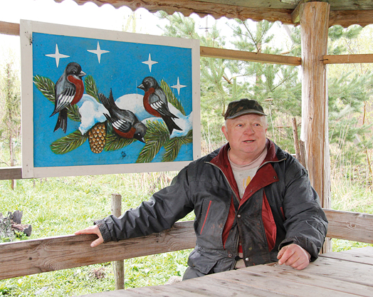 Жители за считанные минуты собрались на сельский сход в беседку, сделанную своими же руками. Кстати, на этом стоит заострить отдельное внимание. Вокруг незатейливого строения люди посадили тюльпаны, кусты можжевельника. Внутри – стол, скамейки, часы, старый телевизор для интерьера, а главное – красивые, радующие глаз картины. Эти произведения искусства таким образом подарил селу местный художник Фёдор Воробьёв. Живет Фёдор Иванович в родительском доме и, как говорит, счастлив, что картинами могут любоваться односельчане.