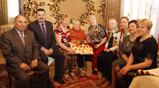 Вручая юбиляру Почетную грамоту райисполкома за многолетний добросовестный труд, Николай Шепелевич отметил неоценимую роль женщин на фронтах и в тылу в период Великой Отечественной войны. Вместе с пожеланиями крепкого здоровья, активного долголетия ветерану вручили денежную премию и цветы.