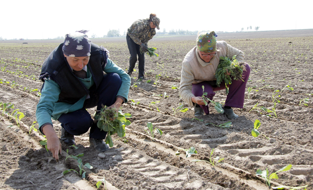 Большая нагрузка в эти дни ложится на механизаторов: в поле, где мы побывали, на тракторе МТЗ с сеялкой СКН-6 трудится Олег Дубровский, следом за агрегатом идут полеводы. Они следят за тем, как высажены растения. Быстро и слаженно работают овощеводы OAО «Фирма «Вейно».
