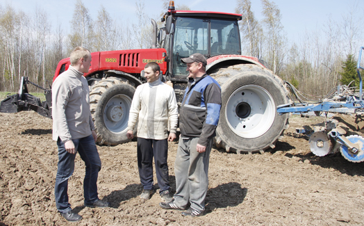 Два энергонасыщенных «Беларуса» мы увидели в поле недалеко от деревни Залубнище. На одном тракторе сеял ячмень уже упомянутый Михаил Кожемяко, на втором производил дискование почвы Яков Кравцов, а Денис Якимович подвозил семена к сеялке. Любо-дорого было смотреть на их слаженную работу – настоящие профессионалы!