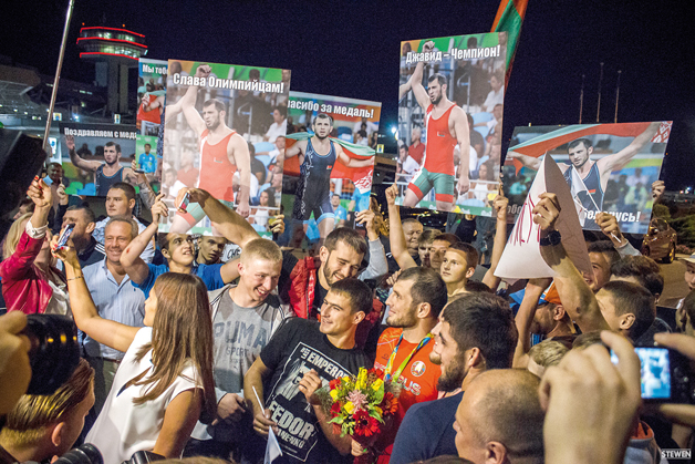 18 августа из Бразилии в Беларусь в статусе Олимпийских призёров вернулись наши спортсмены – борец Джавид Гамзатов и тяжелоатлеты Вадим Стрельцов и Дарья Наумова. В Национальном аэропорту «Минск» им устроили по-настоящему тёплый и радушный приём — военный оркестр, хлебный каравай, тренеры, многочисленные родственники, друзья и коллеги.