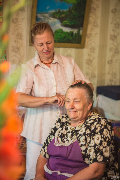 социальным работником Валентиной Панкратовой мы посетили дом, где живет семейная пара Альховиков Фёдора и Марии. Они рассказали, что им уделяется должное внимание, пенсионерам всегда помогают с уборкой, готовкой и лекарствами. «Часта да нас прыходзяць», — отмечает Мария Сафроновна. Пока инспектор ОДСПД сверяет данные, соцработник причёсывает хозяйку дома. «Как-никак гости пожаловали – нужно хорошо выглядеть», — добавляет женщина.