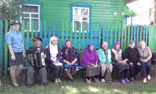 Представители различных служб района встретились с сельчанами и ответили на волнующие вопросы. Помощь в разрешении сложных жизненных ситуаций присутствующим предложила специалист учреждения «Могилевский районный центр социального обслуживания населения» Ирина Осипова. Рассказывая о работе учреждения, она подробно ознакомила с направлениями деятельности центра, услугами, которые оказываются пожилым людям. Присутствующим были розданы памятки с полезной информацией и номерами телефонов учреждения «МРЦСОН». Особое внимание было уделено теме деноминации, о соблюдении пожилыми гражданами мер личной и имущественной безопасности. Специалист центра напомнила о том, что социальные работники и специалисты других служб при посещении пожилых граждан должны предъявлять служебное удостоверение. В данном направлении профилактическую беседу провела инспектор по делам несовершеннолетних Анастасия Солодухина.