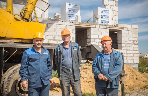 Мы посетили одну из стройплощадок ОАО «Могилевский ленок». Тут возводят пять одноквартирных домов, концепцию которых разработали в «Могилевсельстройпроекте». Как сообщил прораб Руслан Минов, хозяйством предусмотрено продолжение улицы, которая на данный момент без названия. На данном этапе уже готова блочная коробка трёх будущих жилищ, а в двух других эта работа подходит к концу. Площадь застройки каждого дома – 135 м/кв, а жилплощадь – 84 м/кв. Он строится таким образом, что есть возможность дальнейшего расширения площади путем обустройства мансарды.