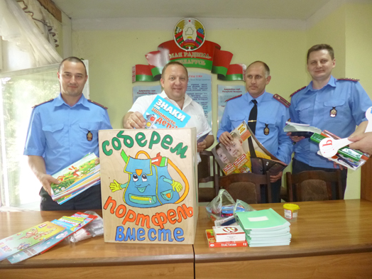В целях оказания помощи детям из многодетных и малообеспеченных семей, находящихся в социально опасном положении, детям-сиротам, детям-инвалидам в подготовке к новому учебному году, в отделе внутренних дел райисполкома проведена акция «Соберем портфель вместе».
