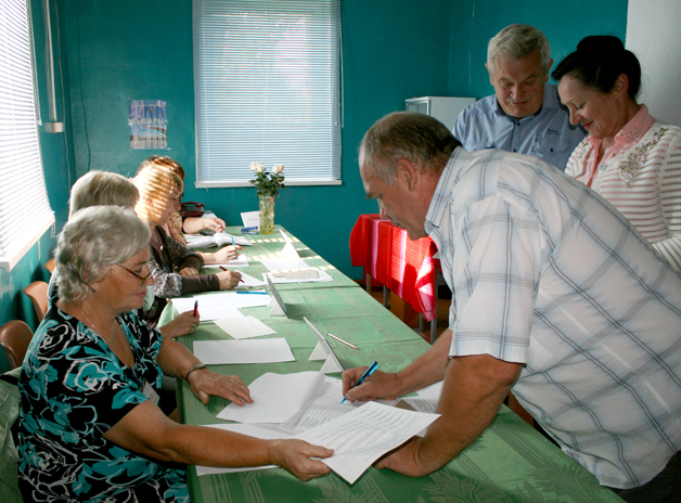 На участке для голосования установлена прозрачная урна для бюллетеней. С 8 часов утра отдать свой голос за достойного кандидата в депутаты Парламента пришли первые избиратели Людмила Секацкая, Дмитрий Бориков. Тем, кто принял участие в важном политическом событии впервые, председатель избирательной комиссии Петр Алтынов вручает поздравительные открытки.