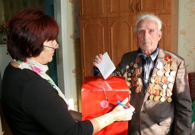 Согласно журнала заявок для голосования на дому в день выборов выехали члены участковой избирательной комиссии.Этим правом воспользовался ветеран Великой Отечественной войны Василий Ермолаевич Гарбузов.Для сельчан концертную программу подготовили участники художественной самодеятельности Полыковичского СДК.