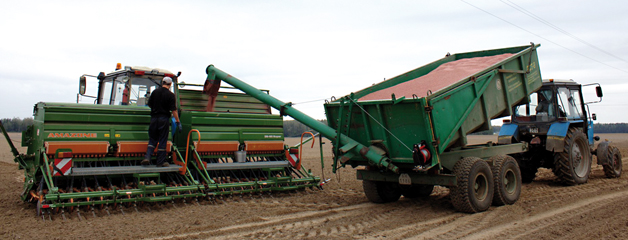 Мы посетили филиал «Серволюкс Агро» СЗАО «Серволюкс», где ведутся работы по подготовке почвы и посев озимой пшеницы. В хозяйстве культивируют белорусский сорт «фантазія». «Под эту культуру отведено 1200 гектаров площадей», – рассказывает начальник отделения «Гуслище» Алексей Демиденко. «Начали сеять озимую пшеницу 28 августа», – добавил собеседник. На этих работах задействован один экипаж. Дмитрий Новиков трудится на тракторе с сеялкой АМАZONE D9 SUPER, а Павел Май – на тракторе с бортом-загрузчиком. Главный агроном отмечает высокое мастерство водителей.