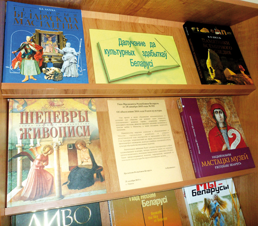 беседы, литературные викторины и конкурсы. Одно из последних мероприятий – викторина ко Дню белорусской письменности «Родная мова – крыніца пазнання». В библиотеке постоянно обновляются тематические выставки, которые позволяют продемонстрировать читателю богатство и разнообразие литературного фонда. На книжных стеллажах размещены подборки изданий по здоровому образу жизни, сельскому хозяйству, истории и культуре нашей страны, творчеству белорусских писателей: «Здоровым быть здорово!», «Зберагчы прыроду – зберагчы жыццё», «У дапамогу гаспадару», «З усіх святынь няма важней Радзімы», «Жыццё пісьменніка – жыццё народа», «ВИЧ/СПИД – несколько полезных советов» и другие. Году культуры посвящена выставка «Далучэнне да культурных здабыткаў Беларусі». Отличается оригинальностью тематическая подборка для детей «Книги-юбиляры 2016 года». Например, всем известному роману Марка Твена «Приключения Тома Сойера» в этом году 140 лет!