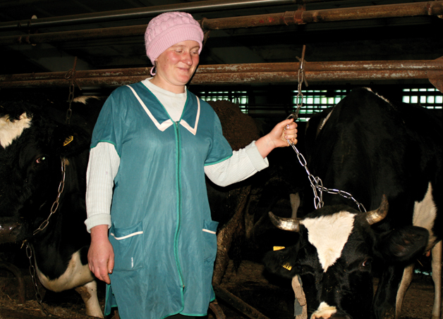 Алеся Шунаева одна из лучших операторов машинного доения МТК «Мосток» ОАО «Полыковичи». В хозяйстве доярка больше 15 лет и свою работу знает лучше многих. Еще маленькой девочкой она бегала на ферму помогать матери, которая также была дояркой. У нее Алеся и научилась азам своего дела. С тех пор современные технологии внесли немало изменений в ее работу: ручное доение сменилось механизированным, да и профессия стала называться иначе, вот только график работы остался неизменным. Первая дойка коров в пять утра, но на ферме работница должна быть еще раньше, чтобы почистить животных, опилки подстелить, подкинуть корма. Несмотря на то, что забот у женщины хватает, со всеми обязанностями она справляется быстро и умело, а главное с присущим ей оптимизмом.