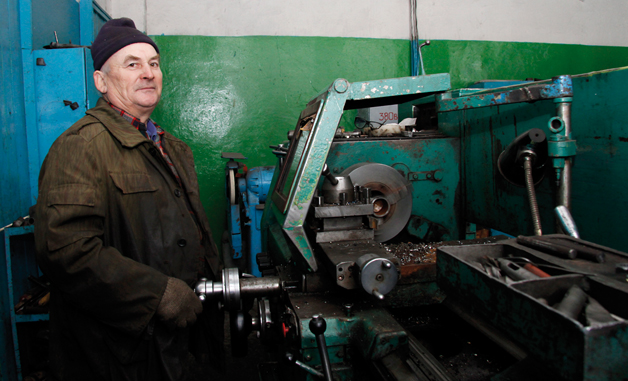 В мастерской работа кипит. Над погрузчиком «Амкодор 332С» трудятся тракторист-машинист Дмитрий Потапенко, слесари Александр Казарицкий и Сергей Батовский. Чуть дальше, в токарном цехе, изготавливает болт для кормораздатчика токарь 6-го разряда Василий Ермоленко. Вот уже 35 лет он трудится в хозяйстве, и из-под его умелых рук вышло немало деталей. Ему предстоит еще выточить «палец» для навески МТЗ. «Такая работа займет час от силы, — поясняет Ермоленко, — а вот реконструкция подшипника считается сложным делом и может занять часа три». Но, как говорит мастер, с таким опытом работается ему легко, да и условия труда созданы подходящие.