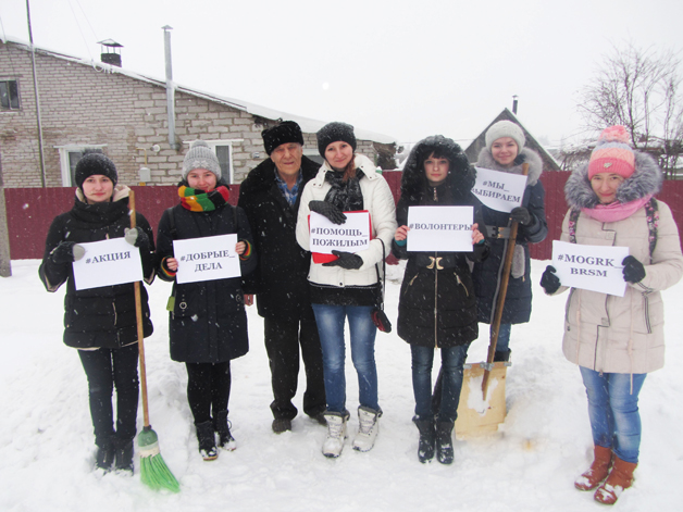 C приходом в Беларусь очередного циклона Могилевский РК ОО «БРСМ» проводит благотворительную акцию «С Добрым Сердцем на Добрые дела». Волонтеры «Доброго Сердца» учреждений образования Могилевского района организовывают работу по оказанию помощи в уборке снега одиноким пожилым людям, инвалидам, ветеранам ВОВ и др.