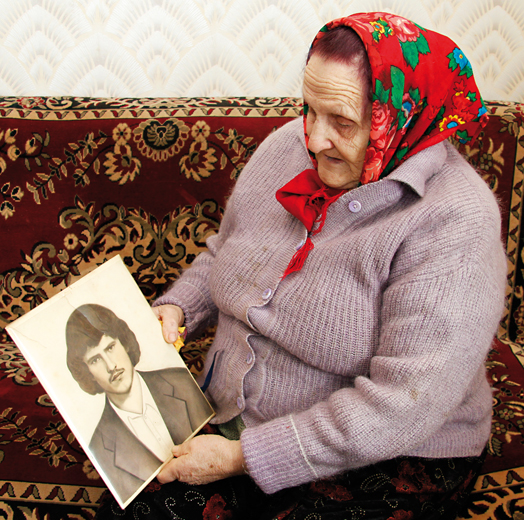 Смотрит мать на фотографию погибшего сына Виктора, и слезы текут рекой по её лицу,