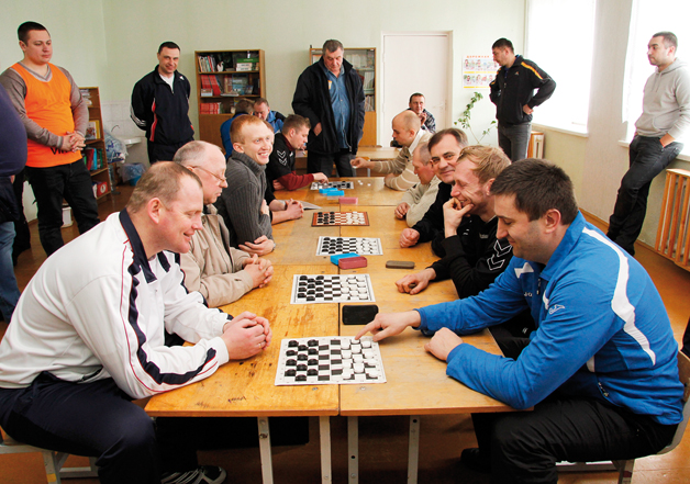 В соревнованиях по шашкам среди мужчин I место занял Юрий Манченко (МУКП «Жилкомхоз»), II место – Юрий Васькович (ОАО «Фирма «Кадино»), III место – Сергей Волчков (филиал «Серволюкс Агро» СЗАО «Серволюкс»).