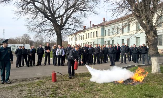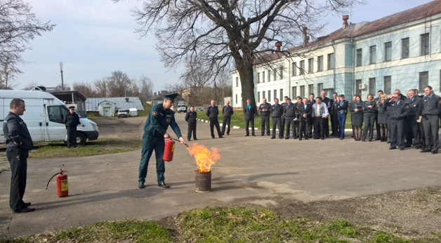 После беседы в актовом зале все присутствующие отправились к заднему фасаду РОВД, где представитель РОЧС на практике продемонстрировал, как правильно пользоваться огнетушителем. В конце мероприятия затушить возгорание с помощью огнетушителя попробовали и милиционеры.