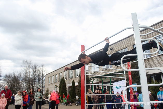Закладка первой воркаут-площадки в рамках проекта «Твое здоровье в твоих руках!» состоялась на базе Кадинской средней школы. В честь этого события в агрогородке прошел спортивный праздник. На мобильной воркаут-площадкe спортсмены продемонстрировали зрителям трюки и упражнения, а также проводили мастер-классы.