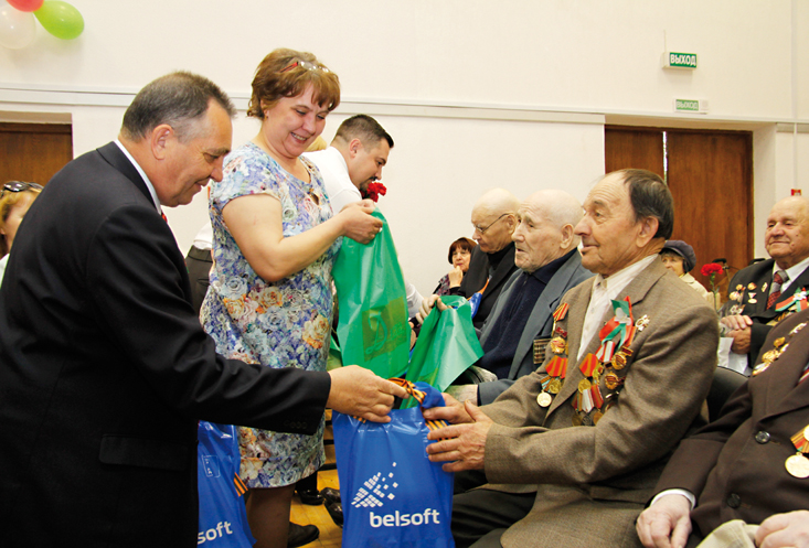 Депутат Парламента и представитель компании ЗАО «НПП БЕЛСОФТ» Елена Маскалик вручили ветеранам цветы и памятные сувениры. Приятным подарком для пожилых людей стал праздничный концерт, организованный хором Дома ветеранов. «Седина ты моя, седина», «На краю деревни старая избушка», «Колосилась в поле рожь густая»… – услышав любимые песни, с которыми, возможно, связано так много воспоминаний, зрители принялись дружно подпевать артистам. И кто бы мог подумать: стойко держась на сцене, свои вокальные способности продемонстрировали ветераны, которым за 90 лет!