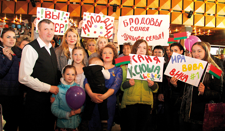 Теплые слова поддержки в адрес семьи Елены и Владимира Бродовых из агрогородка Буйничи не умолкали в минувшую пятницу. «Нашей семье сопутствует успех, семья Бродовых – лучше всех!» – ободряюще повторяли их родные и близкие, держа в руках заранее подготовленные плакаты, шары и флажки. Причиной этому стало участие в областном конкурсе на лучшую многодетную семью. Мероприятие прошло накануне Международного дня семьи во Дворце культуры области и собрало более 20 конкурсантов со всего региона. Участникам необходимо было рассказать о своем родовом дереве, традициях и увлечениях, успехах и достижениях, а также выступить на сцене с творческой программой.