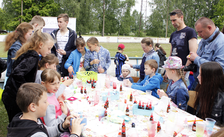 Тренер Евгения Сенчихина показала мастер-класс по восточным танцам. Была организована работа фуд-корта, выставка книг. Словом, занятие по душе нашли и дети, и взрослые. Для ребятишек налажена творческая мастерская, где они с удовольствием рисовали красками. Для гостей и участников предлагали бесплатный кофе, дегустацию продукции. Работали бесплатные мастер-классы по росписи гипсовых фигурок «Нашы майстры». На площадке возле магазина РайПО желающие могли купить сувениры, поразвлекаться на батутах. Праздник стал настоящим фейерверком дружбы, веселья, конкурсов.