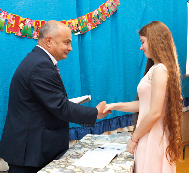 Когда последний «урок» подошел к концу, наступил самый долгожданный момент вечера – вручение аттестатов. Семь вчерашних школьников, которые на протяжении нескольких лет старательно и умело преодолевали ступеньку за ступенькой, шагнули на порог новой главы в книге жизни. Поздравления прозвучали от директора учебно-педагогического комплекса Владимира Клопова, который пожелал девушкам и юношам уверенности в своих силах, стремления к поставленным задачам, исполнения всего задуманного, удачи в делах и начинаниях. «Чтобы мы всегда могли вами гордиться», – добавил он. Как заметил Владимир Яковлевич, нынешние выпускники отличались особой активностью: принимали участие во многих мероприятиях и конкурсах, где показывали разнообразные таланты, публиковали познавательные материалы в школьной, а также районной газетах, каждый год получали дипломы на олимпиадах по учебным предметам.