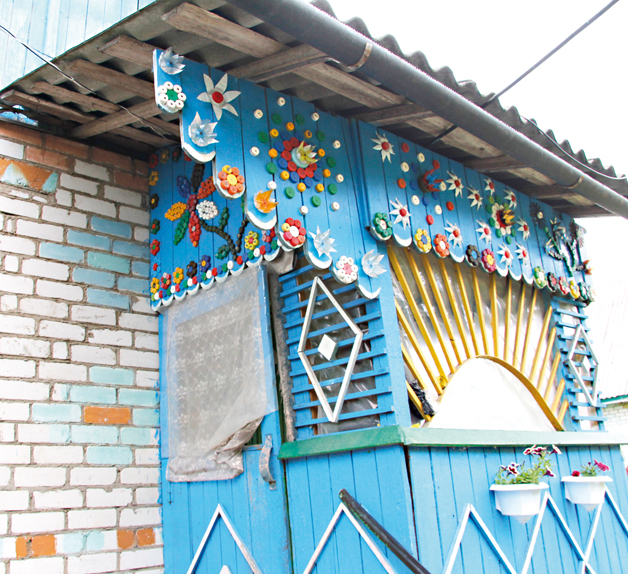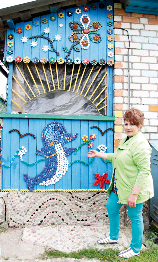 Оригинально оформлена веранда, пристроенная к дому: яркий и красочный вид она приобрела благодаря цветочным орнаментам и сказочному дельфину из пробок от пластиковых бутылок. Немного фантазии, желания, терпения – и бросовый материал превратился в настоящий арт-объект, привлекающий внимание всех гостей! «А совсем скоро участок покроется множеством цветов», – продолжает беседу Людмила Александровна, показывая нам фотографии придомовой территории в летний период. В ярких красках ее палисадник утопает до глубокой осени. Вьющиеся клематисы, устремленные ввысь гладиолусы, пышные флоксы, нежные розы, а также пионы, астры, ирисы, петуньи, хризантемы и маргаритки (всех не перечислишь!) попеременно радуют хозяйку своим цветением. «Работая на участке, как бы это странно ни звучало, я отдыхаю, – признается она. – Уж очень мне нравится после плодотворного дня любоваться созданной красотой».