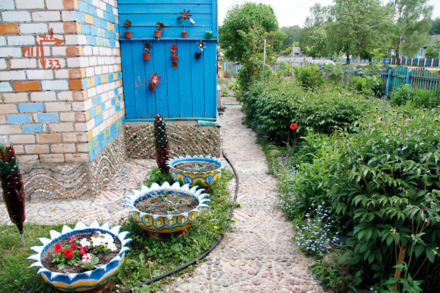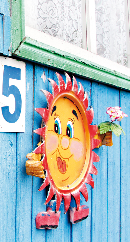В качестве декора клумб использованы камни, покрышки, изделия из пластиковых бутылок, а для особой таинственности в вечернее время суток – небольшие фонарики вдоль дорожек. На наружных подоконниках красуются вазоны с цветами, и даже одна из стен здания, лицевая, украшена ими, правда, уже пластиковыми. Территория, прилегающая к участку, оформлена цветущими площадками, которые охраняют деревянные сказочные герои – змейка и черепаха. Здесь же расположена и детская игровая зона в виде песочницы. «Жизнь в сельской местности, в частном доме, – это прекрасная возможность творить, реализовывать самые необычные идеи, создавать красоту своими руками», – поделилась своими мыслями Людмила Коровкина, в планах у которой еще много интересных задумок.