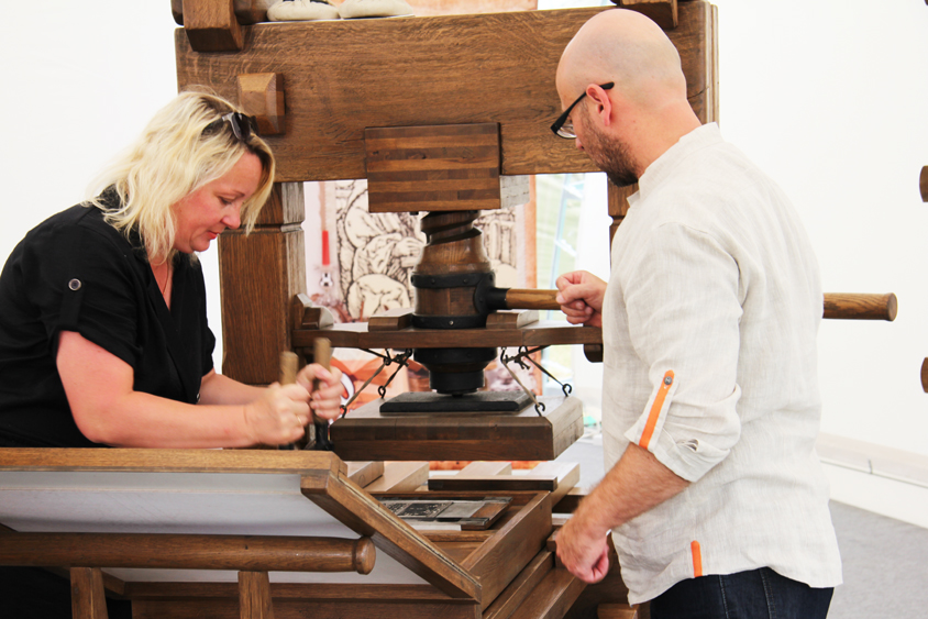 Привлекал своей необычностью «Друкарскі двор», где на специальном оборудовании, сделанном по чертежам XVI века, каждый желающий мог самостоятельно изготовить бумагу или отпечатать текст первой страницы Библии.