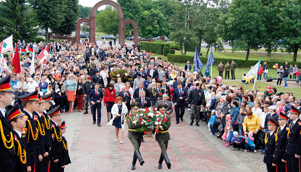 Колонну делегации нашего района возглавили председатель райисполкома Анатолий Дутько и председатель райсовета депутатов Валентин Соловей. Отдать дань памяти погибшим пришли в этот день заместители председателя райисполкома, начальники отделов и служб, председатели сельисполкомов, руководители сельхозпредприятий, представители общественных организаций, молодежь.