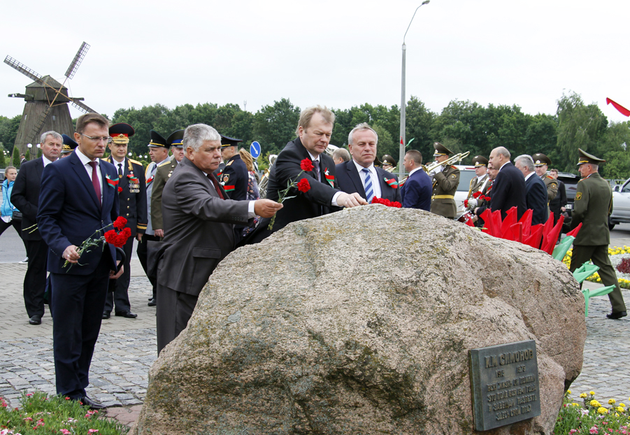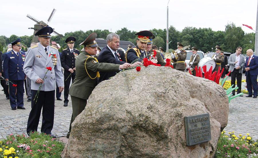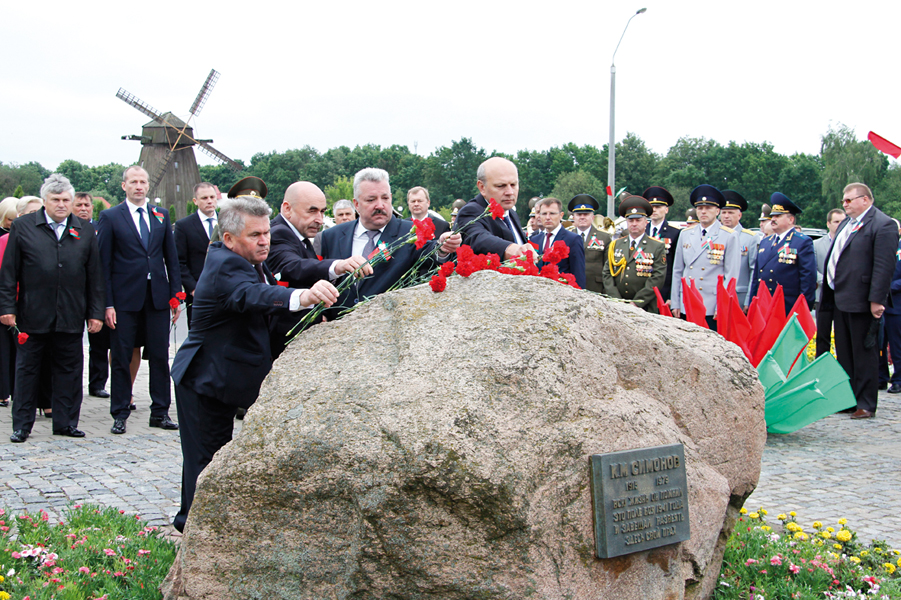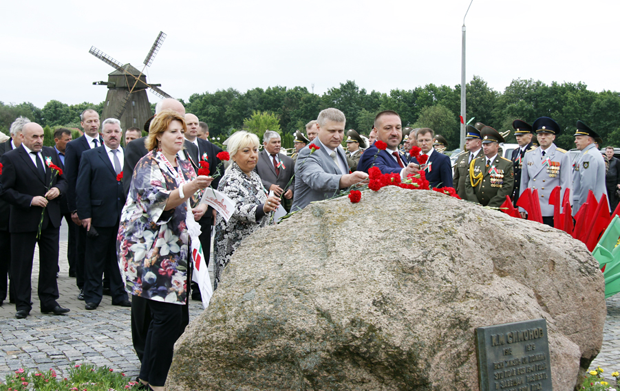 В этот же день цветы были возложены к мемориальному камню писателю Константину Симонову, который, будучи военным корреспондентом, рассказал о периоде обороны города Могилева в 1941 году. Эти события нашли затем отражение в его романе «Живые и мертвые».
