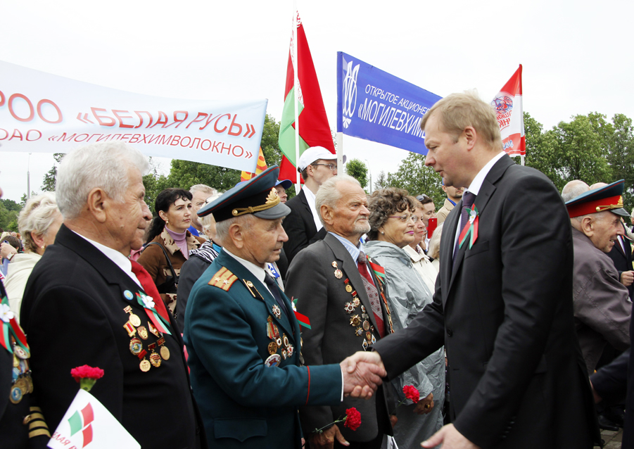 Суровым испытанием для белорусов стала Великая Отечественная война. На полях сражений погиб каждый третий белорус. Только в нашей области с лица земли были стерты более ста деревень вместе с жителями. Но народ встал на борьбу с фашизмом, проявив небывалый патриотизм, мужество и отвагу. Великий подвиг старшего поколения белорусов сегодня надежно подкрепляется волей современников, выбравших в качестве главного приоритета развития независимости страны мирный труд. Поэтому великая честь быть продолжателем поколений освободителей, – отметил Владимир Доманевский.